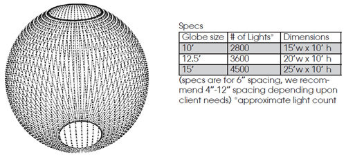 3-D globes offer an incredible 360-degree light display. Can display low res video, text, and be sequenced to music to display any effect imaginable.